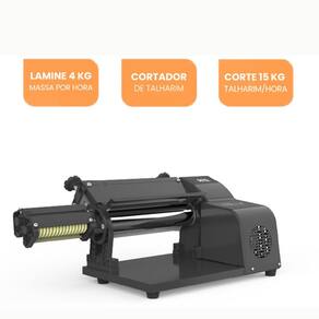 O laminador consegue laminar até 4 kg de massa por hora e cortar até 15 kg de massa por hora.