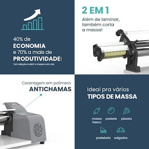 Cilindro Laminador Elétrico 28cm Grigio Cinza Massas Pão Pizza Pastel com Cortador And Anodilar Voltagem: 220v A AND Anodilar é um fabricante reconhecido pela extrema qualidade, durabilidade e eficiência de seus produtos. É referência na fabricação de utensilios e maquinários de cozinha industrial, possuindo uma linha diversificada de produtos, todos adequados a padrões internacionais de segurança e qualidade. A competência do fabricante Anodilar o levou a atender todo o mercado brasileiro, Mercosul, México, África e Portugal. Em resumo, a marca oferece produtos super confiáveis de altissima qualidade, que garantem a satisfação dos seus clientes. O Cilindro Laminador Elétrico 28cm com Cortador é o produto ideal para a produção de massas de lasanhas, pães, pastéis, pizzas, folhados, salgados e diversos tipos de massas como talharim, tortéi e muito mais. Características: - Ideal para - Rolo em aço cromado - Rolo com 28cm de aproveitamento - Rolamentos em nas extremidades fazendo a massa mais uniformes - Espessura da massa regulável entre 0mm e 7mm - Possui raspadores, para não grudar a massa e para manter o rolo limpo após o uso - Motor protegido com tecnologia antichamas, para maior segurança do produto mesmo aquecido - Permite laminar 6kg de massa por hora - Base em MDF antibacteriana - mais durabilidade e facilidade na limpeza - Chapa de proteção amarela - maior segurança na utilização e evitando acidentes - Acompanha cortador tipo Talharim, com corte de 4mm - Mesa de apoio inclinada em 45- facilita a laminação sem que haja esforço manual - Pés emborrachados - evitam vibração e não derrapam com o uso - Motor 1/4 CV de alta performance - Produto certificado pelo INMETRO - Voltagem: 110 ou 220 volts; - Motor: 1/4CV 184 Watts ; - Potência nominal: 400W 220 volts 300W 127 Volts ; - Frequência: 60Hz; - RPM do motor: 1630/1690 RPM; - RPM dos rolos: 56/58 RPM. Carga máxima de trabalho: - Esta maquina suporta laminar 6kg de massa a cada hora de trabalho - Nesta maquina, é possível cortar 35kg/h de massa Dimensões: - Comprimento: 43,5 cm - Largura: 34,5 cm - Altura: 24 cm - Peso: 10kg Itens inclusos: - 01 Cilindro Laminador Elétrico 28cm AND Anodilar - 01 Cortador Click AND Anodilar - 02 Manípulos para regulagem da espessura da massa - 01 Chapa Amarela para proteção - 01 Manual de Instruções : 6 meses de oferecidos pela And Anodilar Marca: Não Informado Ean: 7899744890854
