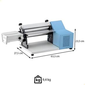 Os rolos laminadores possuem 28 cm de largura, ideais para preparar massas em maior quantidade com agilidade. O equipamento pesa 9,4 kg, sendo robusto e estável durante o uso.