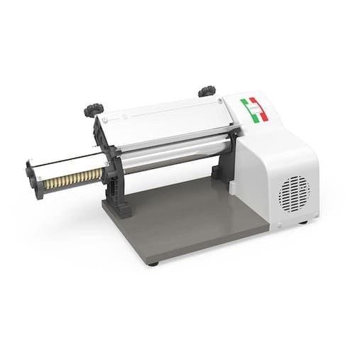 - Laminador de massas com rolos em aço cromado com 37cm de aproveitamento e 5,7cm de diâmetro.