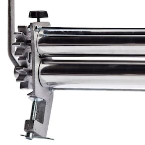 O Cilindro possui roletes de alumínio com diâmetro de 5 cm e comprimento de 29,5 cm, proporcionando um laminado perfeito em suas massas. Além disso, sua abertura entre os roletes é regulável, permitindo que você ajuste a espessura da massa de acordo com sua preferência.
