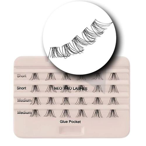 Cada pacote conta com 24 cílios tufos no tamanho curto e médio com tecnologia knot free, ou seja, sem nó e com tira transparente. Além de serem perfeitos para qualquer tipo de olho, deixa seu olhar muito mais natural. Cílios com uma raiz mais alongada. Ainda possuem uma tira transparente que traz naturalidade!