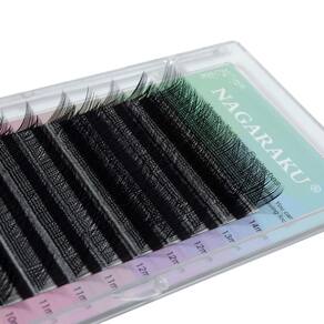 Características Fácil aplicação; Praticidade; Volume e leveza Macio, suave e natural. Espessura: 0,07mm; Curvatura: C e D; Bandeja com 12 fileiras; Bandejas mix: 1 fileira 8mm, 1 fileira 9mm, 2 fileiras 10mm, 3 fileiras 11mm, 3 fileiras 12mm, 1 fileira 13mm, 1 fileira 14mm;