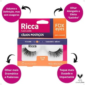 Cílios Postiços Ricca Belliz Flash Lashes Fox Eyes Glow Cat Vol:3 Médio Cód.2694: