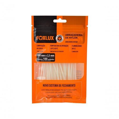 Cinta Abraçadeira Em Nylon 100x2.5 Mm Pacote Com 100 Unidades Branca Organize seus projetos e objetos com eficiência e durabilidade utilizando as Abraçadeiras em Nylon Foxlux! Fabricadas com Nylon 66, um plástico de alta qualidade, essas abraçadeiras garantem resistência e confiabilidade em todas as suas aplicações. A proteção UV integrada previne o ressecamento do material, assegurando que suas abraçadeiras se mantenham intactas e eficazes por muito tempo. Com um tamanho de 100 x 2,5 mm e um pacote contendo 100 unidades, você terá sempre as abraçadeiras necessárias para seus trabalhos. A embalagem Ziploc garante a conservação do produto, evitando danos e perdas. Além disso, a praticidade do sistema de abertura e fechamento Ziploc facilita o armazenamento e organização, permitindo que você mantenha suas abraçadeiras sempre à mão e em perfeitas condições.