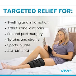 - Alívio da dor no joelho patenteado: visando a parte frontal e traseira do joelho com compressão ajustável e terapia quente ou fria, a joelheira fria Vive reduz efetivamente o inchaço, a dor e a inflamação.