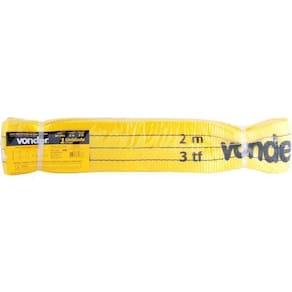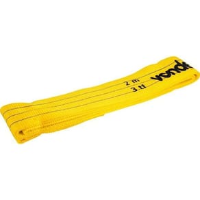 Possui excelente resistência, flexibilidade e facilidade no manuseio, reduzindo o esforço durante a operação, além de oferecer menor risco ou danos na movimentação de cargas. Cinta plana de elevação de carga tipo anel.