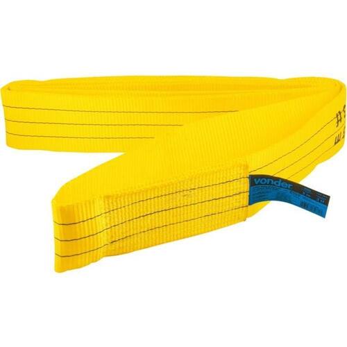 Possui excelente resistência, flexibilidade e facilidade no manuseio, reduzindo o esforço durante a operação, além de oferecer menor risco ou danos na movimentação de cargas. Cinta plana de elevação de carga tipo anel.