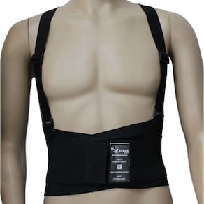 Cinta Ergonômica Indicações de uso.: O uso adequado da cinta ergonômica, permite limitar a flexão dorsal/lombar para ajudar e restaurar o alinhamento da coluna, mantendo uma carga compressiva uniforme nas vértebras ao levantar pesos. Elástico reforçado com fileiras duplas na região lombar para evitar deformação da faixa lombar. 5 Flanges de Pvc maleável Costura em nylon de alta resistência que garante durabilidade fecho aderente, tecido de máxima aderência Com faixa refletiva de 30mm. para ótima visibilidade Cinta ergonômica com ajuste duplo Tamanho M. medidas 92 - 101 cm. Circunferência medida na altura do umbigo.
