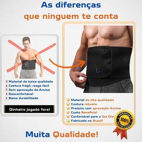 - Alivio de dores lombares. - Possui laminado plástico na parte interna que intensifica o calor na região abdominal, facilitando a absorção de produtos cosméticos utilizados nessa região, principalmente géis redutores. - Utilize na prática de esportes e exercícios físicos. - Na cor preta apenas.
