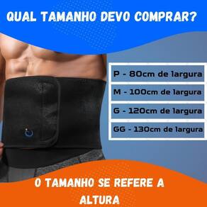 Benefícios da Faixa Estética: - Alivio de dores lombares. - Possui laminado plástico na parte interna que intensifica o calor na região abdominal, facilitando a absorção de produtos cosméticos utilizados nessa região, principalmente géis redutores. - Utilize na prática de esportes e exercícios físicos. - Na cor preta apenas. Qual tamanho comprar P - 80cm de largura. M - 100cm de largura . G - 120cm de largura . GG - 130cm de largura. Composição: 70% clorofibra, 15% algodão, 10% elastano e 5% outras fibras. Forma de uso / Colocação: 01 - Envolva o tronco com a faixa posicionando a parte elástica de forma centralizada nas costas, na altura do abdômen. 02 - Fixe o fecho de contato no tecido aveludado da faixa utilizando a compressão necessária e adequada para o caso. Embalagem: Contém 1 uma unidade. ANVISA: AF Nº 8.04.537-8 Responsável Técnica: Dra. Vanessa Dantas Aguiar - CREFITO-3 Nº 39345-F CREFITO: RE Nº 5435-SP do vendedor: 3 meses Marca: Não Informado Ean: 7893251581601