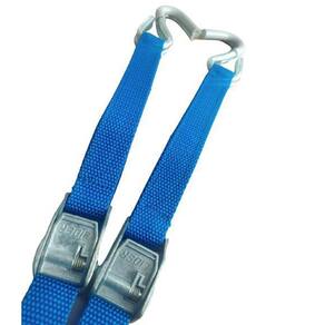 Cinta com presilha zamak de 25mm de largura e com 1,80 metros de comprimento e gancho tipo S nas extremidades para amarração de cargas em geral.