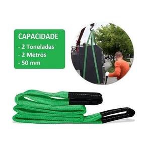 A cinta suporta até 2 toneladas, garantindo segurança na elevação de cargas pesadas.
