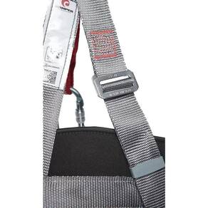 Esse cinturão de segurança possui 06 fivelas duplas em aço, que permitem ajustes precisos nas pernas, cintura e suspensório. Além disso, conta com 01 meia argola em aço com ponto de conexão dorsal, 02 meia argolas em aço na cintura utilizadas para posicionamento, 01 meia argola em aço com ponto de conexão peitoral e 01 meia argola de engate umbilical para resgate.