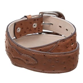 Um Cinto unissex de alta qualidade da nossa marca exclusiva Cow Way, este fabricado em couro estilo Avestruz na cor Caramelo seguindo o design e tendências atuais, possui correia com 4,3cm de largura no centro e 3,8cm nas ponteiras. Este modelo vem costurado ao longo da superfície. Tanto a fivela estilizada como o passador são removíveis, podendo ser trocados pelo usuário a qualquer momento.