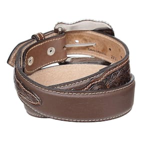 Cinto Country Paul Western da melhor qualidade, fabricado em couro costurado na cor Marrom, há 4cm de largura, possui bordados floridos (entalhados) e uma fivela de metal com entalhes removível caso queira trocá-la.