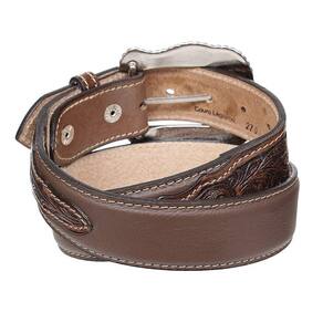 Cinto Country Paul Western da melhor qualidade, fabricado em couro costurado na cor Marrom, há 4cm de largura, possui bordados floridos (entalhados) e uma fivela de metal com entalhes removível caso queira trocá-la.