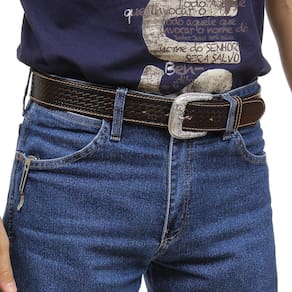 Cinto unissex na qualidade Cow Way, fabricado em couro na cor Marrom seguindo o design e tendências atuais, possui correia totalmente bordada (entalhada), com 3,8cm de largura no centro e nas ponteiras. Este modelo vem costurado ao longo da superfície. Tanto a fivela estilizada como o passador são removíveis, podendo ser trocados pelo usuário a qualquer momento.