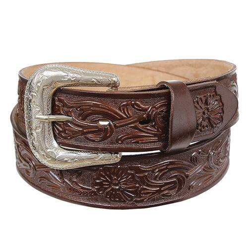 Cinto de Couro Bordado Marrom Cow Way 36247 - Marrom - 115
