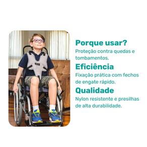 cinto de segurança infantil cadeira de rodas, cinto de contenção infantil, cinto de proteção para crianças, cinto infantil Longevitech, acessório infantil cadeira de rodas, cinto ajustável com fechos, segurança infantil para cadeira.