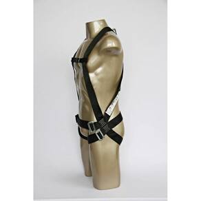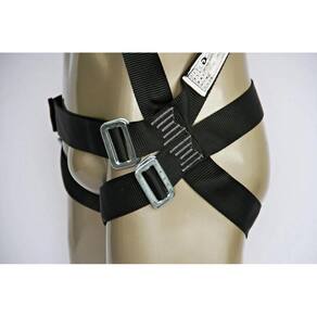 Cinturão de segurança tipo Paraquedista, confeccionado em fita primária de poliéster de 45 mm largura e fita secundária em poliéster de 25mm. Possui 01 ponto de ancoragem dorsal em meia argola estampada de aço. Dotado de 04 fivelas de chapa de aço estampada sem pino, para regulagem, sendo 01 peitoral, 01 na cintura e 02 nas pernas.