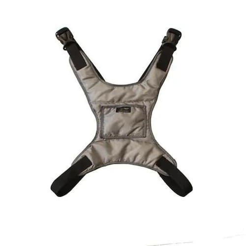 Fácil de prender com duas fivelas de engate em cada lado, o peitoral do cinto é acolchoado para maior conforto. Suas alças ajustáveis chegam ao comprimento máximo de 182 centímetros.