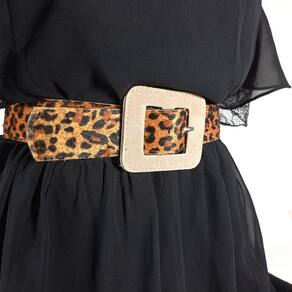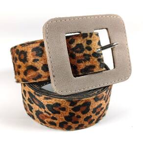 Cinto Feminino Largo Animal Print Onça Com Fivela Quadrada