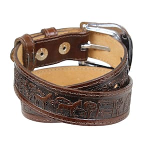 Cinto Infantil da nossa qualidade Cow Way, fabricado em couro de alta qualidade na cor Marrom seguindo o design e tendências atuais, possui correia meticulamente bordada (entalhada), com 2,8cm de largura no centro e nas ponteiras. Tanto a fivela estilizada como o passador são removíveis, podendo ser trocados pelo usuário a qualquer momento.