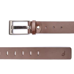 - Cinto de couro; - Fivela de metal; - Cinto com largura de 40mm (aproximadamente);
