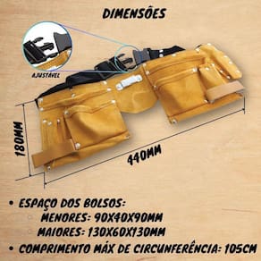 É um item indispensável para profissionais que precisam ter suas ferramentas sempre à mão. Com 11 bolsos, oferece espaço suficiente para acomodar todas as suas ferramentas essenciais de maneira organizada e fácil de acessar. Feita em couro de alta qualidade, a bolsa é resistente e durável, projetada para suportar o desgaste diário em qualquer ambiente de trabalho. O design inteligente permite que você carregue suas ferramentas confortavelmente ao redor da cintura, liberando as mãos para se concentrar no trabalho.