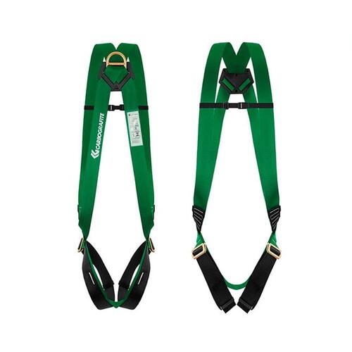 ESPECIFICAÇÕES: :: Fabricado em fita de poliéster. :: Ajustes através de fivelas duplas de aço: Duas localizadas nas pernas. :: Uma meia argola em aço forjado bicromatizado: Dorsal para retenção de queda. :: Proteção Sub Pélvica.