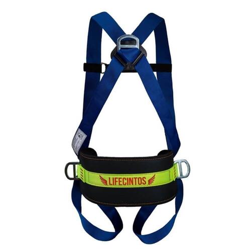Cinturão Paraquedista De 3 Argolas - Life 2004 - Lifecintos Cinturão Paraquedista de 3 Argolas - LIFE 2004 - LIFECINTOS Descrição do produto: Fita primária na cor azul, e amarela neon; composição: poliéster de 45mm de largura. Fita secundária na cor preta; composição: poliéster de 25mm. Dispõe de 3 meias argolas estampadas em aço, sendo 1 dorsal para ancoragem e 2 laterais para utilizar com talabarte de posicionamento. Equipado com 3 fivelas de chapa de aço estampada sem pino para regulagem, para ajuste no peito, 1 fivela em ?D? 25mm niquelada. Tamanho único.
