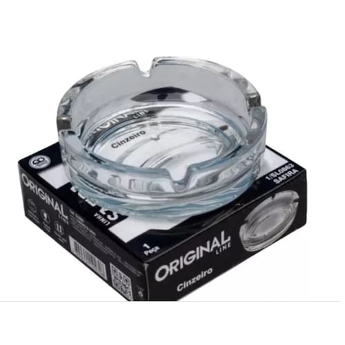 cor transparente do cinzeiro adiciona um toque de modernidade e elegância, combinando perfeitamente com qualquer ambiente.Seja para uso diário ou para uma ocasião especial, este cinzeiro de vidro é a escolha perfeita.Alem do cinzeiro, a embalagem inclui uma caixa, tornando-o uma excelente opção para presente.MEDIDAS APROXIMADASPeso: 260gAltura: 4cmDiâmetro: 11cmMaterial: VidroLinha SAFIRAModelo EM VIDRONome Do Desenho CinzeiroForma RedondaCom tampa Não Marca: Original Glass