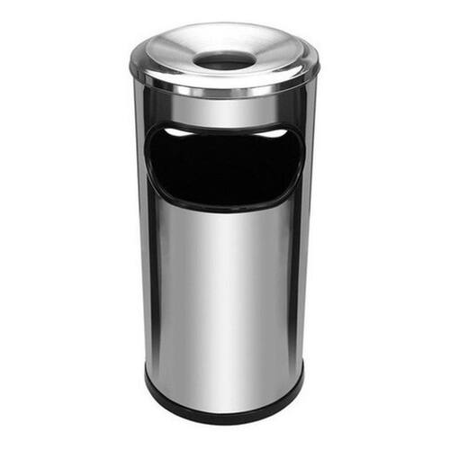 Confeccionada em aço inoxidável AISI 430, fundo em plástico ABS de alta resistência, aro em alumínio, furos laterais para jogar lixo e cinzeiro na parte superior da lixeira.