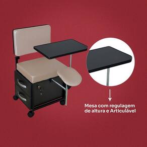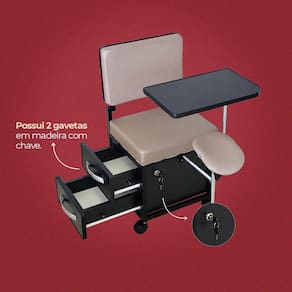 - conforto superior: estofado macio e suporte ergonômico para longas sessões. Espuma densidade d 28. - estrutura robusta que garante uma vida útil prolongada, com suporte de até 120 kg distribuídos uniformemente - praticidade: mesa articulável com regulagem de altura. Apoio de pés com regulagem de altura e inclinação, e removível. - possui duas gavetas com chave e rodinhas que facilitam na movimentação. - estilo moderno: transforme seu ambiente de trabalho em um espaço moderno e eficiente com a cirandinha evolux - se você busca excelência no atendimento e conforto em seu trabalho, a cirandinha evolux é a escolha ideal Ideal para: - manicures e pedicures - salões de beleza - clínicas de estética