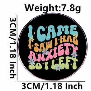 Material: Liga Tamanho: 3 x 3 cm Peso: 7,8 g Quantidade: você receberá todas as peças em quantidade igual à primeira foto principal. Design inspirado em retrô: apresenta letras coloridas ousadas com toques florais divertidos, transmitindo uma mensagem divertida e identificável com o tema da ansiedade. Citação humorística: diz “Eu vim, vi que tinha ansiedade, então saí”, tornando-o um acessório alegre para uso diário. Construção em liga durável: fabricada com liga de qualidade, resistente ao desbotamento e arranhões, garantindo o uso a longo prazo. Compacto e leve: medindo 3 x 3 cm e pesando 7,8 g, este emblema se encaixa perfeitamente como alfinetes de blusa, alfinete de lapela ou acessório de mochila. Acessório expressivo: um broche exclusivo e peculiar que combina humor com consciência, adequado para homens, mulheres e jovens.