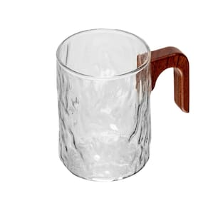 Cj 2 Canecas de Vidro Martelado C/Alça de Bambu 330ml Wolff