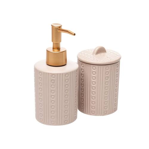 Composto por um porta-sabonete líquido e um pote multiuso (ideal para escovas, cotonetes ou o que você quiser!), esse conjunto ajuda a manter tudo em ordem de forma encantadora.