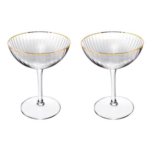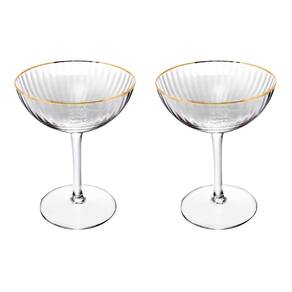 Cj 2 Taças de Vidro Transparente Coupe C/Fio de Ouro Lines 250ml Wolff