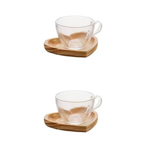 O conjunto de 2 xícaras de café com pires em formato coração de madeira