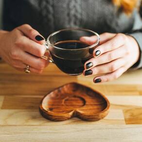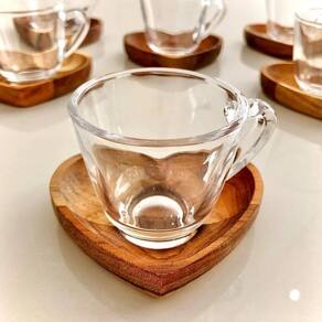 Para os amantes que aprecia tomar um bom café, chá e um bom chocolate quente com charme requinte com esse jogo de xicaras com pires de madeira formato coração perfeição no acabamento e riqueza nos detalhes.