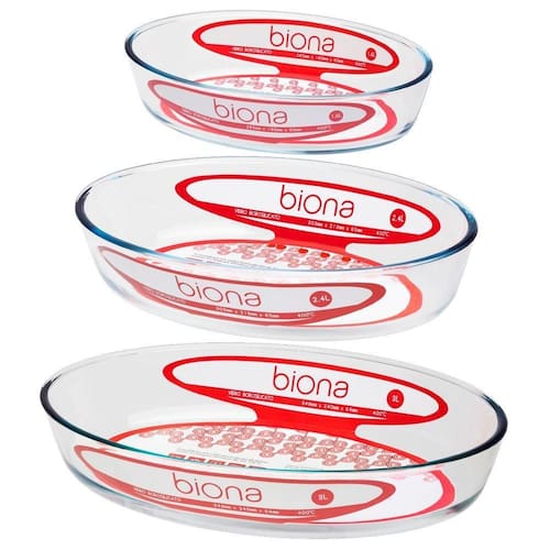 Conjunto 3 Assadeiras de Vidro Oval em vidro borossilicato, um tipo de vidro muito resistente a altas temperaturas e que suporta choques térmicos de até 120ºC. Mais praticidade e segurança para o preparo das refeições. Esse conjunto vem com três assadeiras de tamanhos diferentes e que podem ser empilhadas para ocupar pouco espaço no armário.