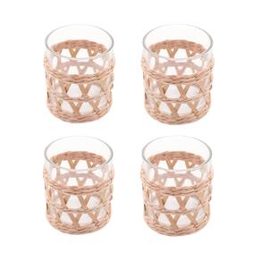 O conjunto apresenta design vistoso e moderno, corpo decorado com sisal, charmoso.Na composição de sua mesa posta as peças podem ocupar um lugar de destaque na decoração, já que são belíssimos e fáceis de combinar com outros utensílios para servir.Muito prático, os copos servem variados tipos de bebidas, como água, sucos ou refrigerantes.