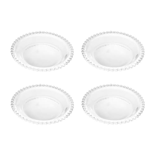Cj 4 Pratos de Pão de Cristal Pearl Bolinha Transparente 14cm Wolff