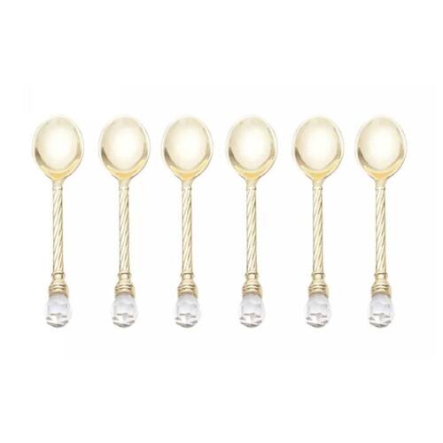 Cj 6 Colheres de Café de Zamac Crystal Dourado 11cm - Wolff