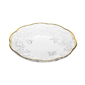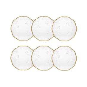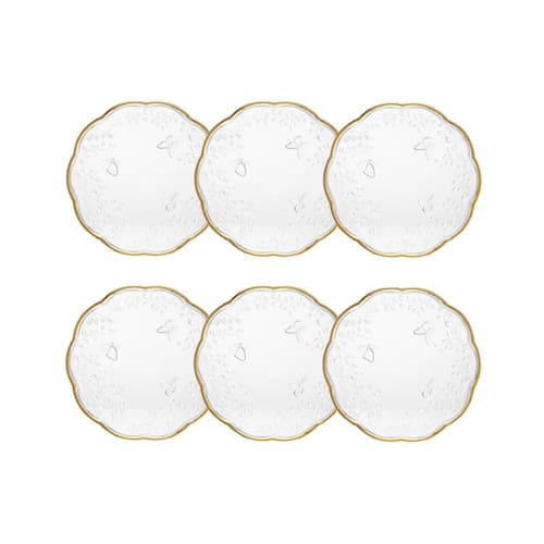 Cj 6 Pratos para Sobremesa de Cristal Transparente C/Fio de Ouro New Butterfly 20cm Lyor