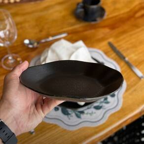 O orgânico shape Ryo, valoriza a fluidez e a beleza do imperfeito, assim como propõe a filosofia japonesa Wabi-sabi. Dialogando com tendências que buscam a conexão com a natureza, as novas decorações da linha celebram a dualidade dos elementos de fogo e água.Com acabamento acetinado, a decoração Volcano captura a essência das chamas e da transição do fogo em brasa com o imponente preto fosco. As bordas orgânicas recebem um filete reagente de tonalidade ocre. Peças com acabamento acetinado podem apresentar marcas superficiais de uso. Para removê-las, recomenda-se a limpeza com o lado abrasivo da esponja, com movimentos suaves e detergente neutro.
