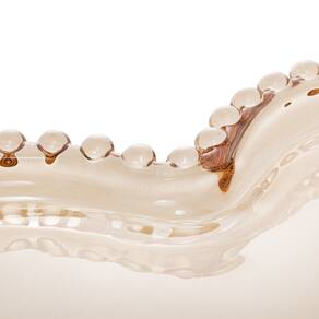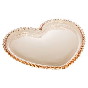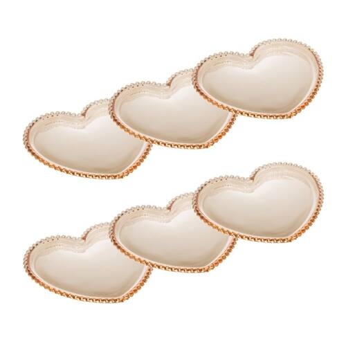 O Cj 6 de Pratos Rasos de Cristal com Formato Coração Pearl Bolinha Âmbar 25x22cm da Wolff é um conjunto encantador de pratos de jantar/sobremesa feito de cristal âmbar de alta qualidade, apresentando um design romântico em formato de coração com bordas decoradas com bolinhas em relevo que remetem a pérolas.