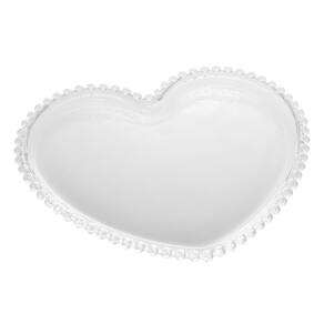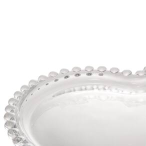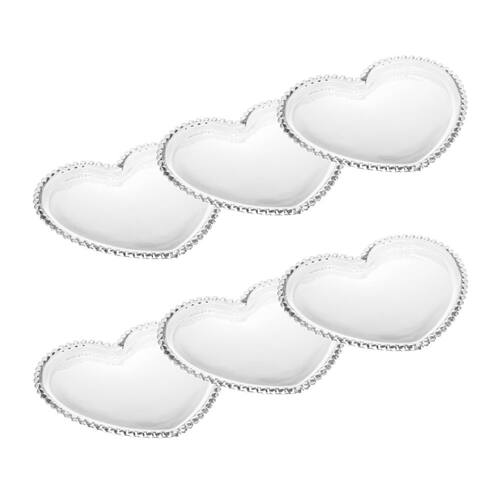 O Cj 6 de Pratos Rasos de Cristal com Formato Coração Pearl Bolinha Transparente 25x22cm da Wolff é um conjunto encantador de pratos de jantar/sobremesa feito de cristal transparente de alta qualidade, apresentando um design romântico em formato de coração com bordas decoradas com bolinhas em relevo que remetem a pérolas.
