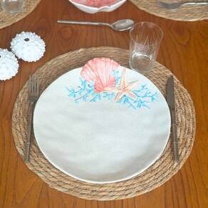 Há peças que não apenas servem alimentos — elas contam histórias. O Prato Raso Marinho Concha do Mar Rosé é uma dessas. Inspirado na beleza silenciosa do oceano, traz em sua superfície um desenho delicado de concha e estrela do mar entre corais vibrantes, como se cada refeição fosse acompanhada pela brisa do litoral. Com 29,5cm de diâmetro e fabricado em melamina de alta qualidade, ele une leveza, resistência e um visual que transforma qualquer refeição em um momento de contemplação estética. Perfeito para pratos principais em almoços tropicais, jantares ao ar livre ou mesas descontraídas com um toque de sofisticação náutica. É a escolha certa para quem deseja sair do óbvio sem abrir mão da praticidade. Por que escolher este prato? • Estampa artística – concha e estrela do mar com corais em tons que evocam frescor e vida• Estilo náutico contemporâneo – elegante sem ser exagerado• Alta resistência – feito em melamina durável, ideal para o dia a dia ou ocasiões especiais• Composição harmônica – combina com outras peças da coleção oceano Marca: Não Informado